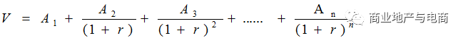其中Ai為“凈物業(yè)收益”現(xiàn)金流,r為折現(xiàn)率。