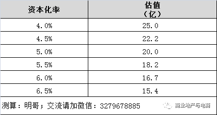不同資本化率下1億NOI值對應(yīng)的估值水平