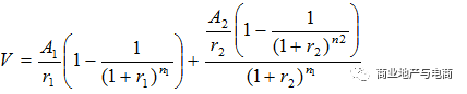 其中A1為現(xiàn)有租約租金收益,r1為租期內(nèi)資本化率,n1為剩余租期;