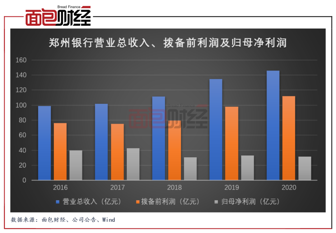 2020年,鄭州銀行實(shí)現(xiàn)營(yíng)業(yè)收入146.07億元,同比增長(zhǎng)8.30%;實(shí)現(xiàn)歸母凈利潤(rùn)31.68億元;撥備前利潤(rùn)人民幣111.97億元,同比增長(zhǎng)14.22%。