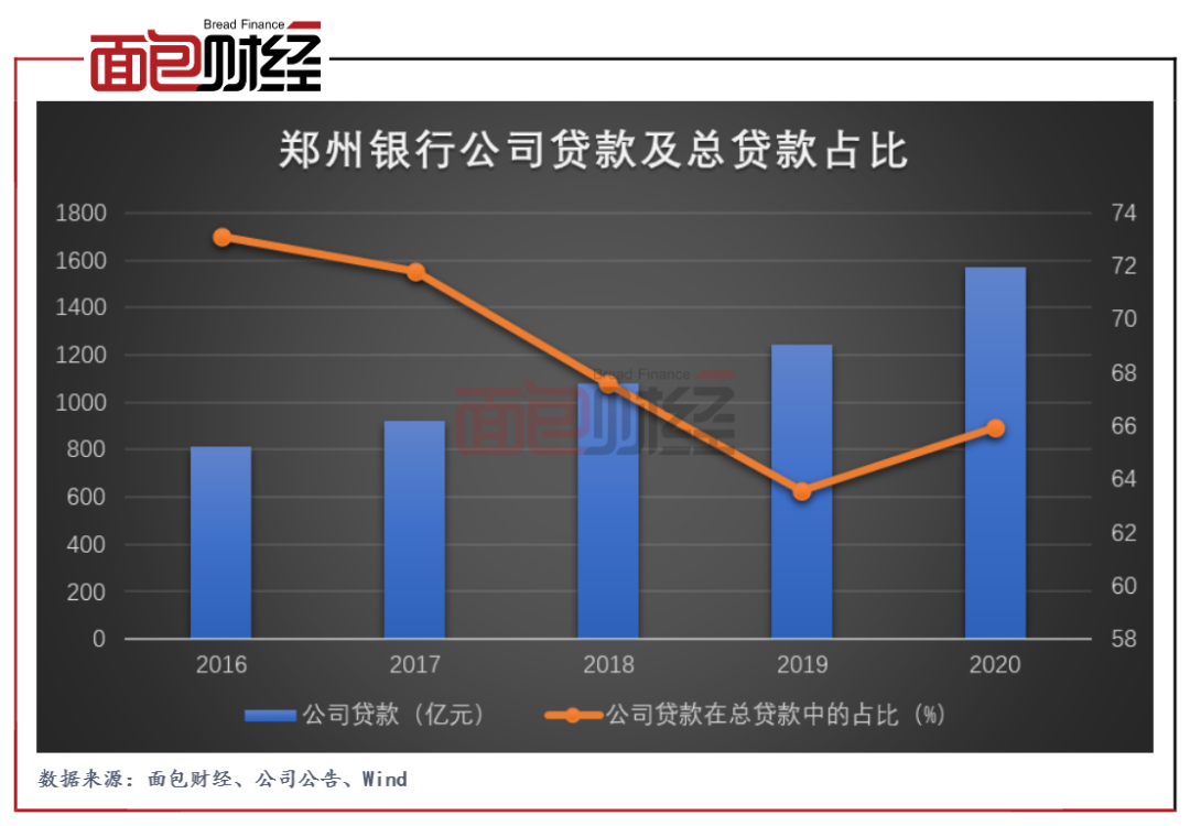 年報(bào)顯示,鄭州銀行的公司貸款主要圍繞“商貿(mào)金融、小微金融、市民金融”三大特色業(yè)務(wù),截至2020年末,該行公司貸款總額為1569.54億元,占該行貸款總額的65.96%,較上年末增加人民幣323.88億元,增幅為26%。
