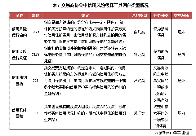 從參考標的來看,CRMA和CRMW的參考標的是具體債務,只有合約標的債務出現違約,信用保護買方才能獲得信用保護;而CDS和CLN則參考實體的信用風險,一旦約定的參考實體發生信用事件,包括支付違約、破產等,都由信用保護賣方為信用保護買方提供風險損失賠償。