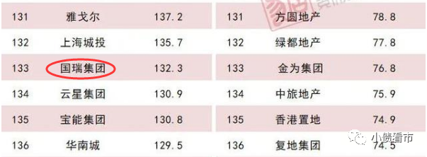 據克而瑞數據,2021年國瑞集團以132.3億操盤金額在房企中位列第133位,屬于中小型房企。