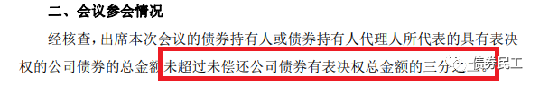 6、2021年3月19日,出席本次持有人會議的“”持有人所持表決權數(shù)額未超過總表決權數(shù)的50%,本次持有人會議表決結果無效。