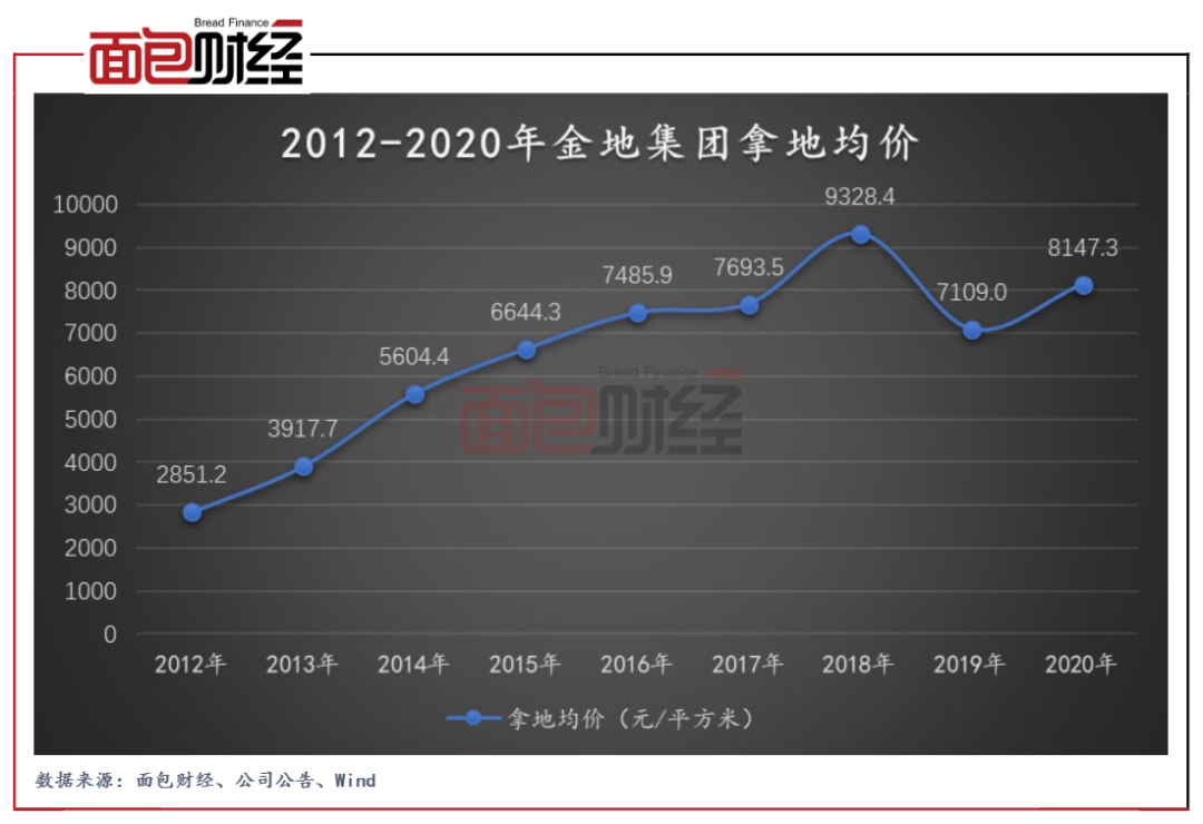 根據公司過往拿地數據計算,2012-2018年公司拿地均價不斷攀升,由2851.2元/平方米上漲227.2%至9328.4元/平方米。或受前期高價拿地影響,公司毛利率自2018年以來持續下滑,2020年還發生總減值損失8億元,直接拖累了業績表現。