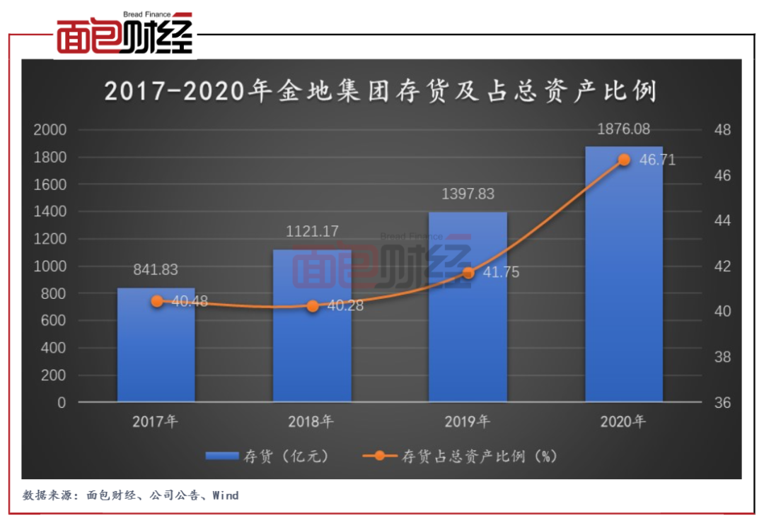 截至2020年末,公司存貨為1876.08億元,占總資產的比例為46.71%,占比處近年來高位,未來仍存在減值風險。