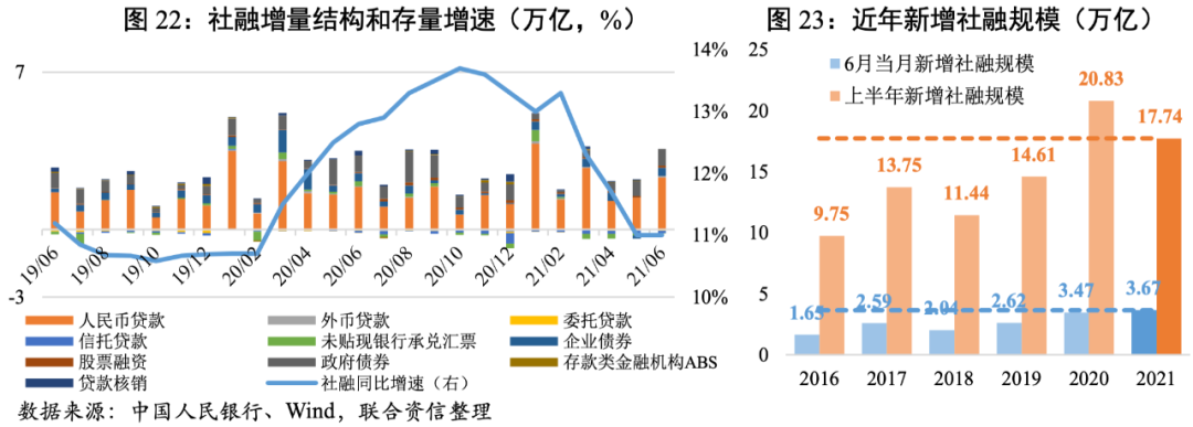 ·上半年CPI溫和上漲;PPI持續(xù)上漲但6月漲幅略有回落,主要是上游三黑一色行業(yè)價(jià)格帶動(dòng);社融存量同比增速整體呈下行趨勢(shì),新增信貸創(chuàng)歷史新高,實(shí)體融資需求旺盛。
