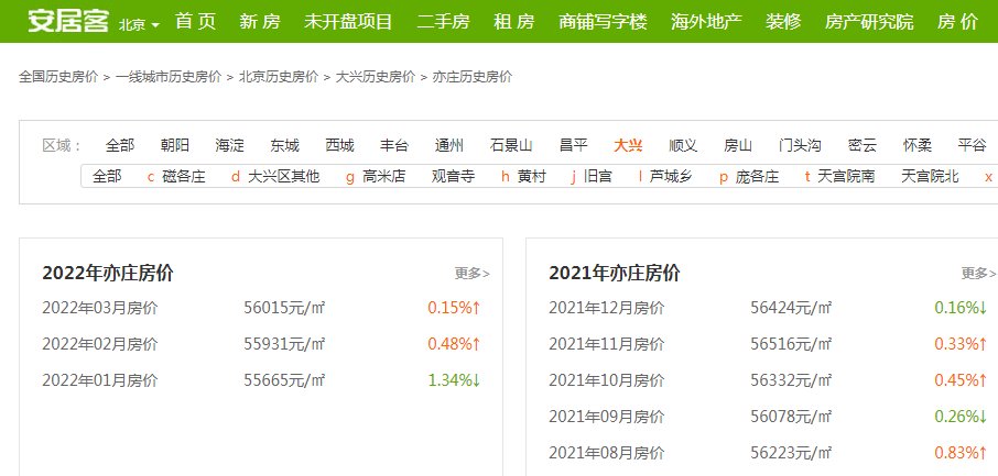 亦莊板塊3月二手房掛牌均價56015元/㎡,環(huán)比2月漲0.15%,同比2021年同期上漲1%。按此漲幅計算,一年漲5288元/㎡。