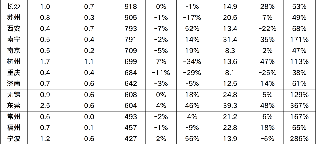 部分疫情控制較好的城市市場筑底企穩,例如海口成交同比跌幅收窄至3%,又如西安成交放量,同比增長32%。壓力城市在救市政策落地后市場確有回溫,但持續時間較短。典型如鄭州,上半月成交明顯回升,但由于樓市供遠大于求,下半月成交再度下滑。