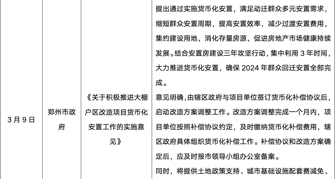 其六,鄭州實施安置房建設工作三年行動,堅持以貨幣化安置為主。