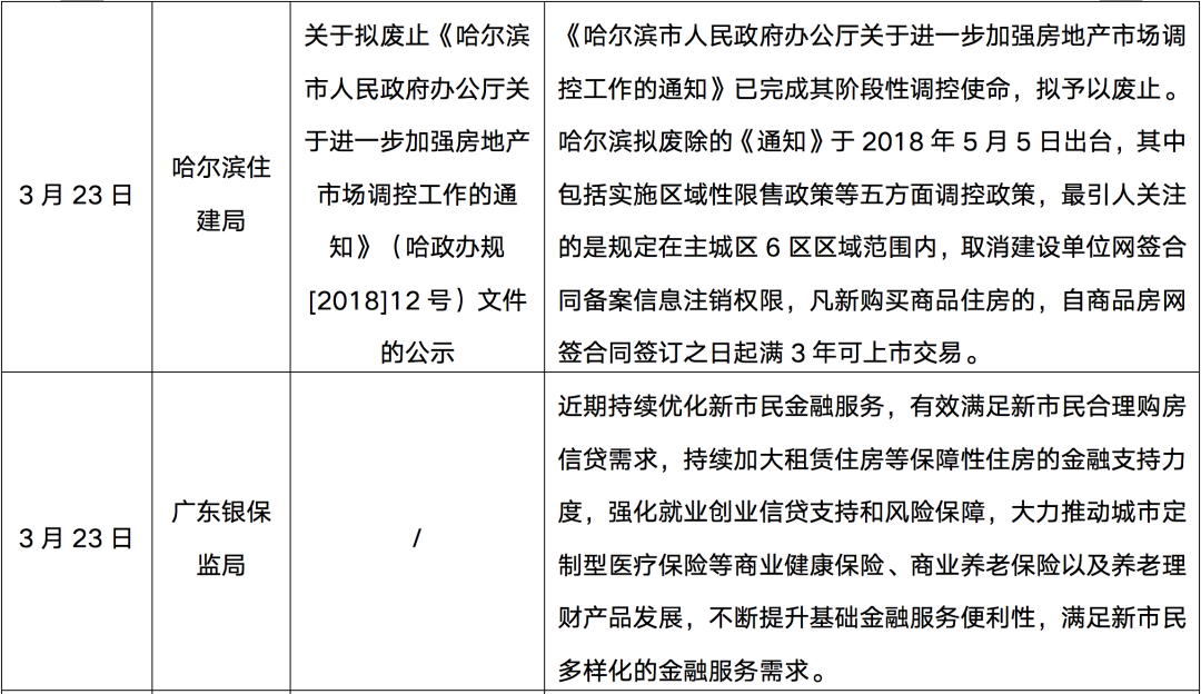其四,鄭州、哈爾濱、福州等局部放松乃至取消“四限”,例如哈爾濱取消區域性限售政策。