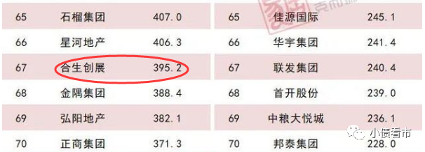 據克而瑞數據,合生創展以395.2億操盤金額位居房企第67位,體量上看屬于中小型房企。