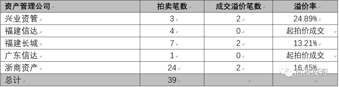 3:2017年~2018年浙商資管不斷加快了省外業務的布局,在福建不良資產市場的收購端和處置端都有不俗的業績,特此列入表中以供參考(實際數據遠比此表中所示的多,由于信息收集無法全面,僅作投資參考)