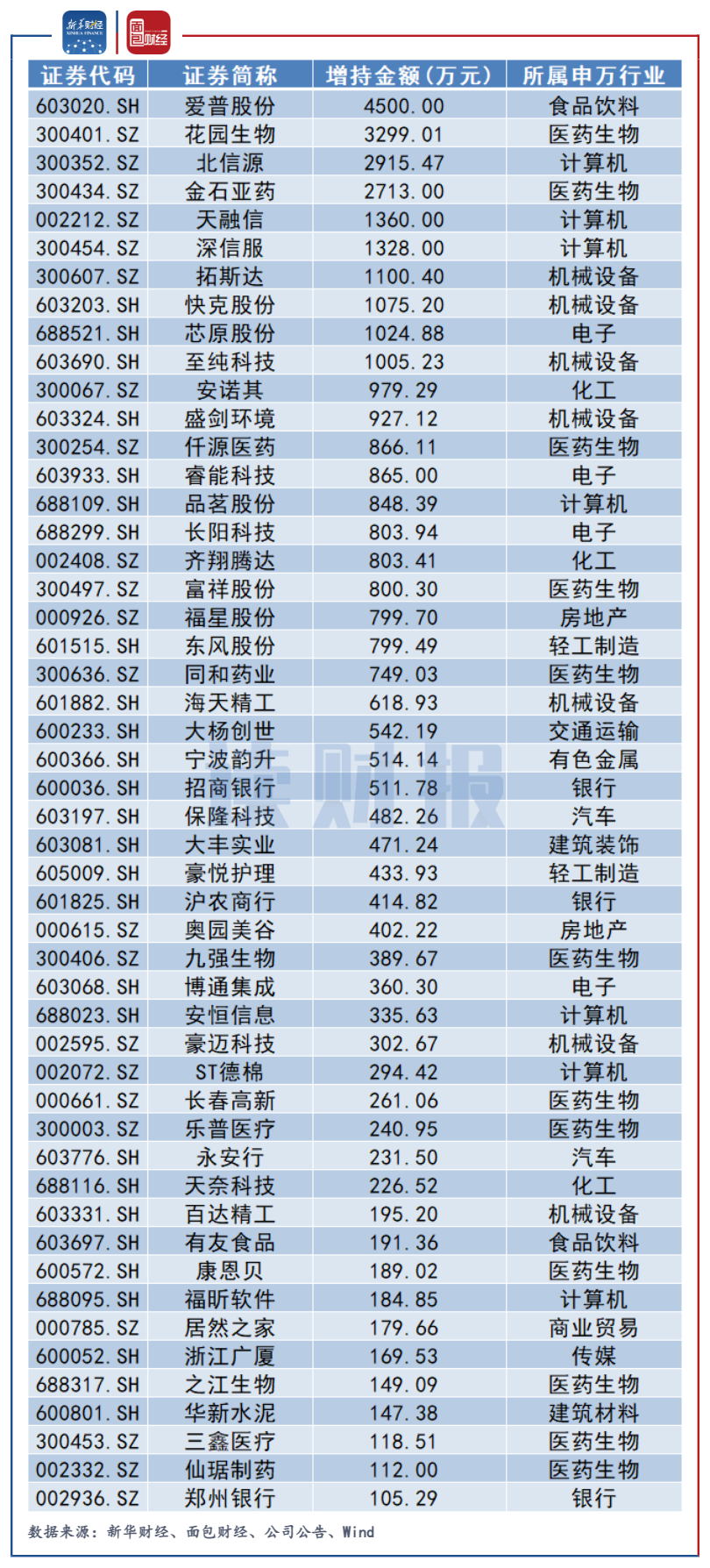 個(gè)股來看,愛普股份、花園生物、北信源的增持金額排名前三,金石亞藥以及天融信緊隨其后。其中,愛普股份實(shí)控人魏中浩由于參與認(rèn)購(gòu)公司本次非公開發(fā)行股票,導(dǎo)致股份增加,此次增持金額為4500萬元。(JZY)
