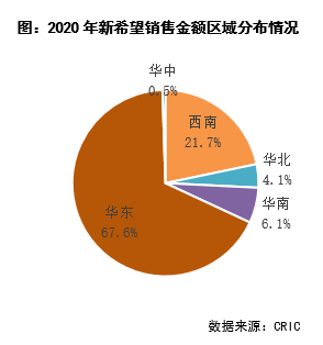 新希望地產銷售規(guī)模的增長,一方面得益于其城市深耕、區(qū)域聚焦策略。2020年銷售業(yè)績的接近90%來源于華東和西南的9個城市,城市深耕策略顯著,其中,杭州、南京、溫州、成都4城的銷售金額貢獻超過100億元以上。截至2020年底,新希望地產在售項目主要集中在15個高能級城市中,主要分布在長三角城市群、西南核心城市和粵港澳大灣區(qū)三大核心城市群,這些城市普遍市政配套較為完善、居民擁有較強的購買力,使得抗風險能力較強,為新希望貢獻穩(wěn)定的銷售。