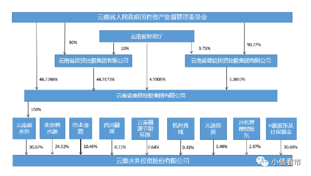 從股權結構看,云南省綠色環(huán)保產業(yè)集團有限公司、碧水源(300070.SZ)和煙臺信貞添盈股權投資中心(有限合伙)持有云南水務股份比例分別為30.3%、24.02%和10.46%,公司實際控制人為云南省國資委。
