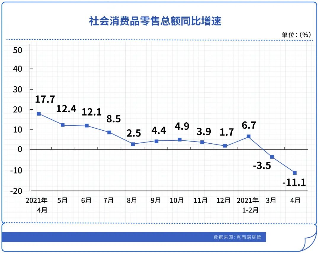 國家統計局數據顯示,2022年4月,社會消費品零售總額29483億元,同比下降11.1%,繼3月首次轉負后降幅再次擴大。