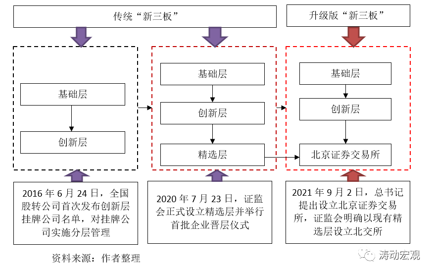 (一)北交所是在現(xiàn)有的新三板精選層基礎(chǔ)上組建,屬于新三板改革的重要內(nèi)容,即北交所仍可被歸于升級版的“新三板”,具體包括現(xiàn)行的基礎(chǔ)層、創(chuàng)新層以及北交所三個(gè)部分。
