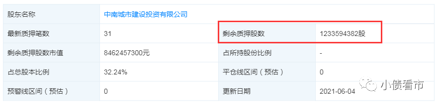 截至今年6月,中南城建已質(zhì)押12.34億股中南建設(shè)股份,占其所持公司股份的59.94%。