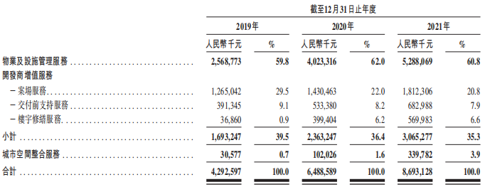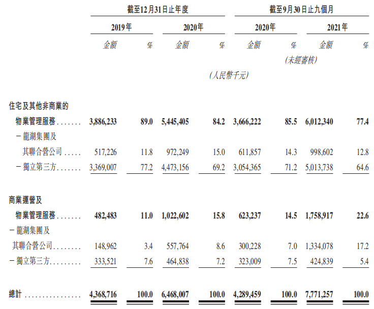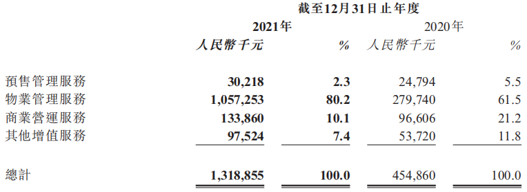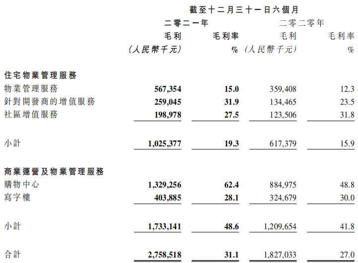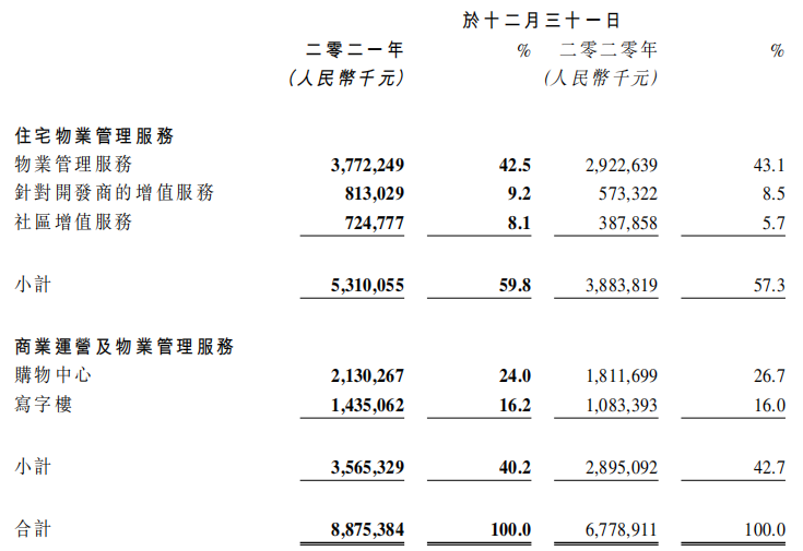 物管業(yè)務(wù)方面,報告期間內(nèi),全年實現(xiàn)收入人民幣53.1億元,同比增長36.7%;來自住宅物業(yè)管理服務(wù)的收入為人民幣37.723億元,較去年同期增長29.1%,占總收入42.5%。