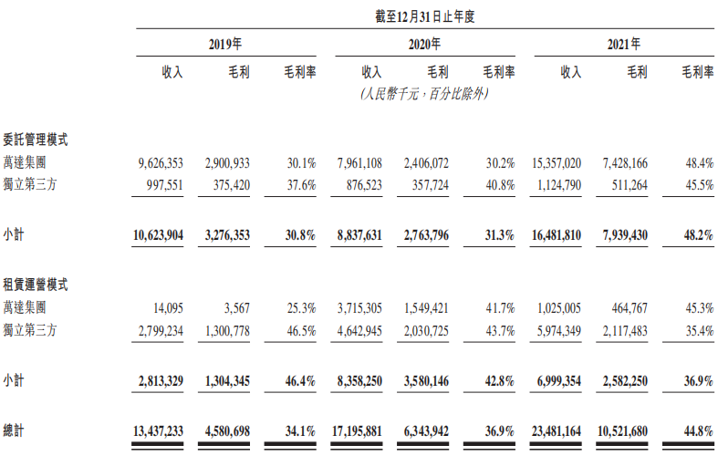 2021年,珠海萬達(dá)商管總收入234.81億元,毛利為105.22億元;毛利率為44.8%。