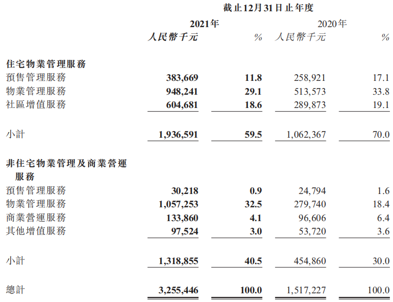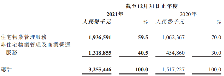 其中,住宅物業(yè)管理服務(wù)方面實現(xiàn)收入為19.37億元,占總收入的59.5%;非住宅物業(yè)管理及商業(yè)營運服務(wù)方面實現(xiàn)收入為13.19億元,占總收入的40.5%。