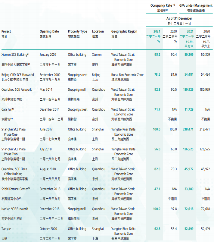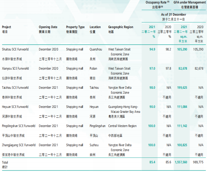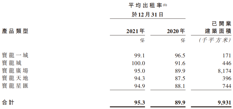 已開業(yè)項目數(shù)量88個,同比新增20個,報告期間內(nèi)新開業(yè)項目22個,包括14個購物中心,3個特色主題街區(qū),5個社區(qū)商業(yè)。整體出租率為95.3%。