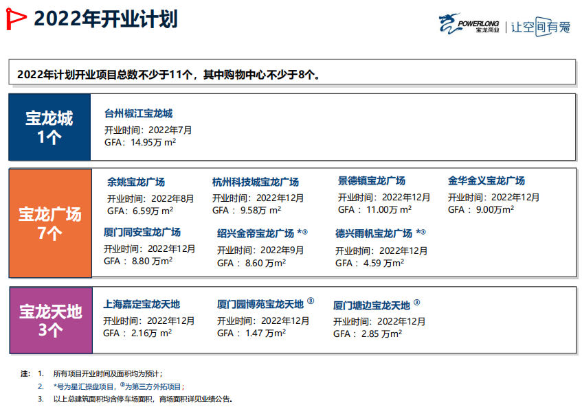 預(yù)計2022年,在拓展規(guī)模和項目開業(yè)方面完成不低于70萬平方米的新拓合約面積,并實現(xiàn)不少于8個項目的炫彩開業(yè);在運營管理方面,目標(biāo)出租率不低于95%。