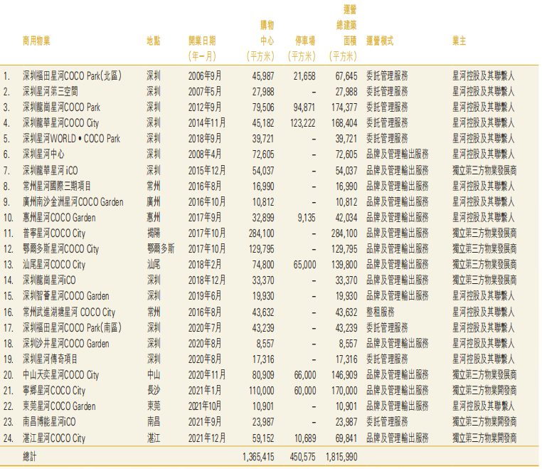 報告期間內(nèi),集團(tuán)相繼與上海建工集團(tuán)、廈門特房集團(tuán)、廣州立白集團(tuán)等建立合作,成功簽約日照星河iCO、廈門星河COCO Park、廣州健康港星河COCO Park、廣州從化海音星河iCO、湛江星河COCO City,共計5個第三方項目:
