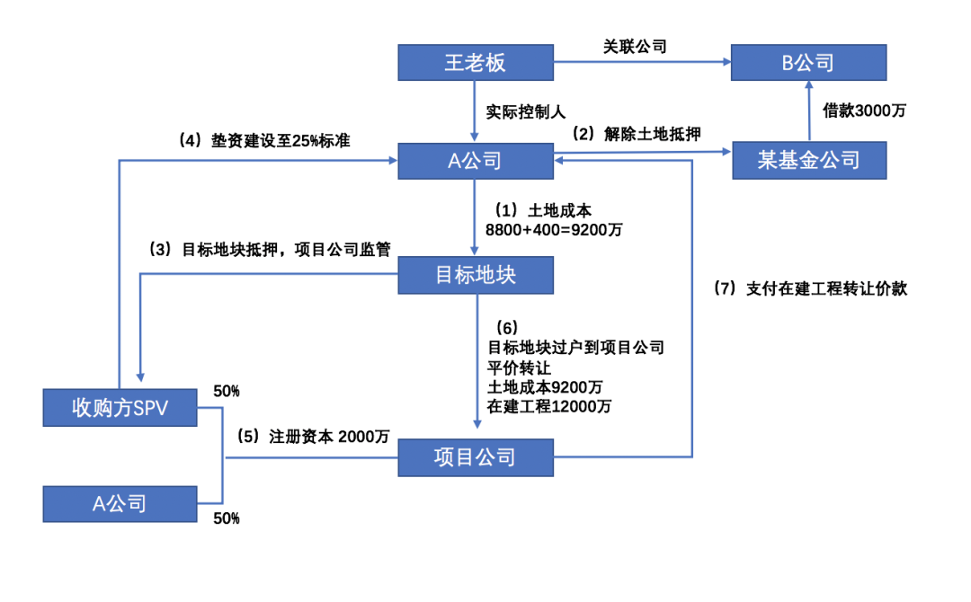 但在后續盡職調查中發現,A公司已將目標地塊抵押給了某基金公司,為A公司的關聯方B公司擔保借款3000萬元