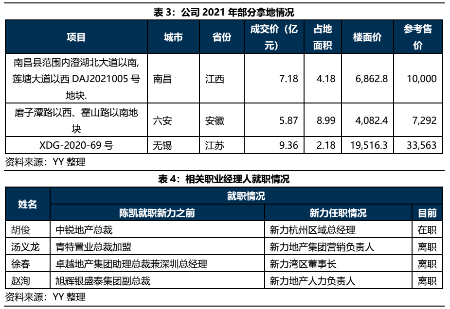 2020年公司管理層發(fā)生較大變動,3月份明星職業(yè)經(jīng)理人陳凱加入新力任聯(lián)席董事長兼總裁,5月份公司原執(zhí)行董事兼副總裁佘潤廷先生辭任,同年10月陳凱辭任。
