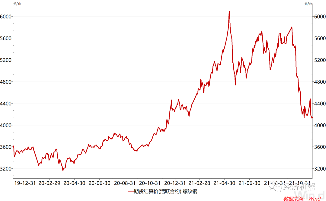 生產領域價格的顯著回落也印證了限產沖擊的迅速消退,這不僅表現在煤炭采選等行業,也體現在鋼鐵、有色、化工等各個領域。比如螺紋鋼期貨價格呈現出與動力煤類似的走勢,于10月中旬開始出現大幅回落(圖5)。