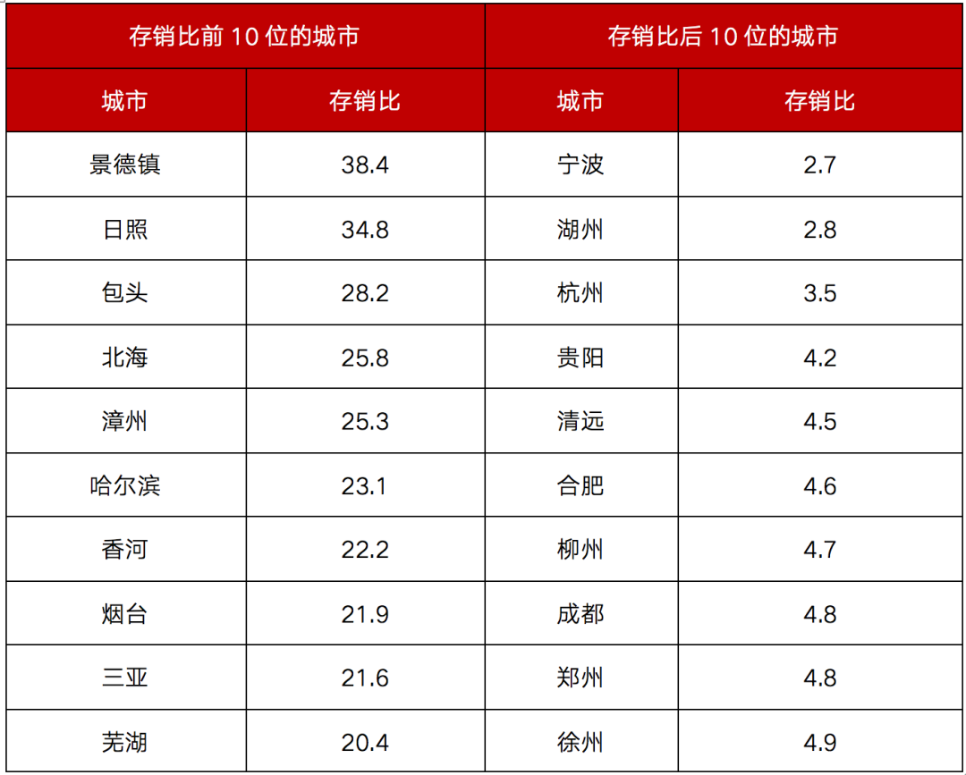 從庫存來看,哈爾濱全國百城庫存去化周期也位于低位,從住宅成交走勢來看,哈爾濱住宅成交量出現(xiàn)了連續(xù)4個月的下滑,克而瑞數(shù)據顯示,截至10月底,哈爾濱市商品住宅去庫存周期達到23.1個月,新房存銷比在克而瑞重點監(jiān)測的一百個城市中排名第6,僅低于景德鎮(zhèn)、日照、包頭、北海和漳州。