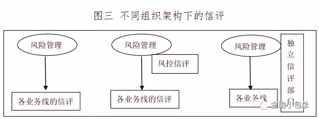 組織架構(gòu)獨立信審模式之下,可以在全公司層面的信用風(fēng)險管理委員會或者投資決策委員會下面下設(shè)獨立的信評部門,負責(zé)所有信用風(fēng)險敞口業(yè)務(wù)的審核和信用研究工作,并向風(fēng)控部報備。