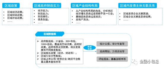 區(qū)域維度看,可以通過整理區(qū)域政策、區(qū)域政府財政實力情況、區(qū)域產(chǎn)業(yè)結(jié)構(gòu)分布、區(qū)域內(nèi)發(fā)債主體關(guān)系,搭建自己的區(qū)域數(shù)據(jù)庫,如下圖: