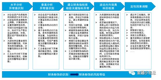 財務(wù)維度看,可以通過水平分析異常值、垂直分析異常值、建立分不同行業(yè)的財務(wù)指標庫,并建立財務(wù)智能化自動化分析、財務(wù)粉飾識別、會計信息質(zhì)量識別和財務(wù)健康度評價,如下圖:
