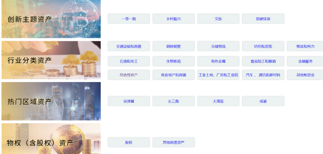 鳳凰網風財訊發現,針對這一輪2000億資產的集中推介,長城資產將其按照不同區域、行業、主題進行展示。