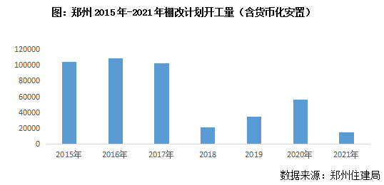 在全國棚改已經漸入尾聲、貨幣化安置偃旗息鼓的當下,鄭州是首個明文支持棚改貨幣化安置的城市。2015-2017年間,鄭州棚改計劃開工量都在10萬套以上,并多次發文倡導貨幣化安置,力爭貨幣安置比例達到50%。