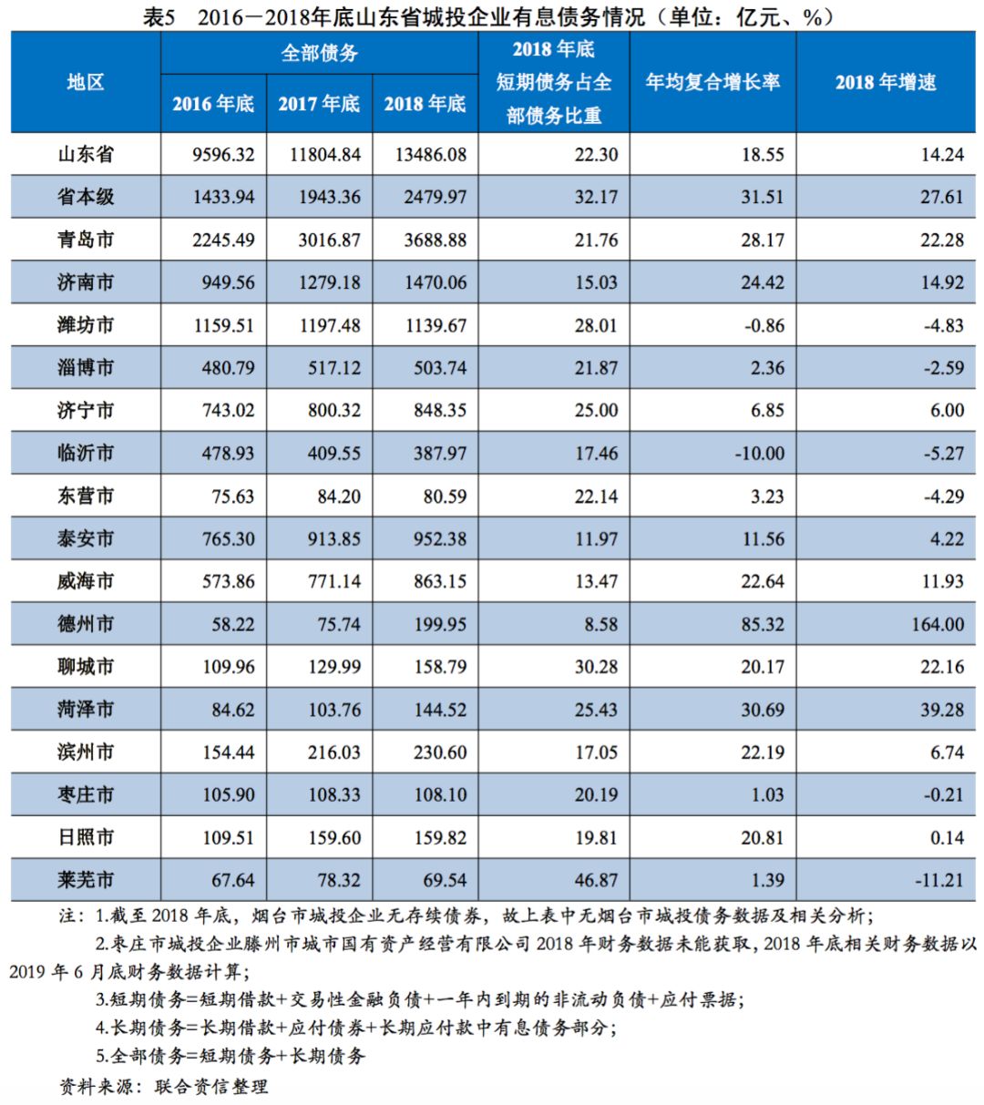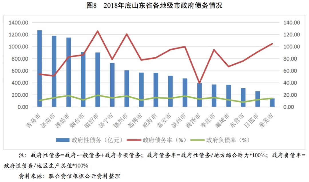 山東省城投企業全部債務高于地方政府債務余額,考慮政府支持后山東省城投企業整體的償債能力一般。