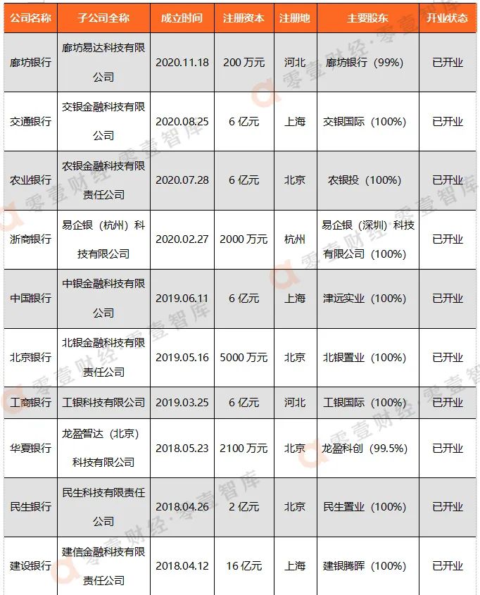 商業銀行也紛紛通過設立金融科技子公司來加快對金融科技的布局。截至2021年4月初,共有14家商業銀行相繼成立了金融科技子公司或確定了長期合作的金融科技公司,負責金融數據處理、應用軟件開發等工作,為銀行數字化轉型提供解決方案;另有2家銀行的金融科技子公司正在籌備中。