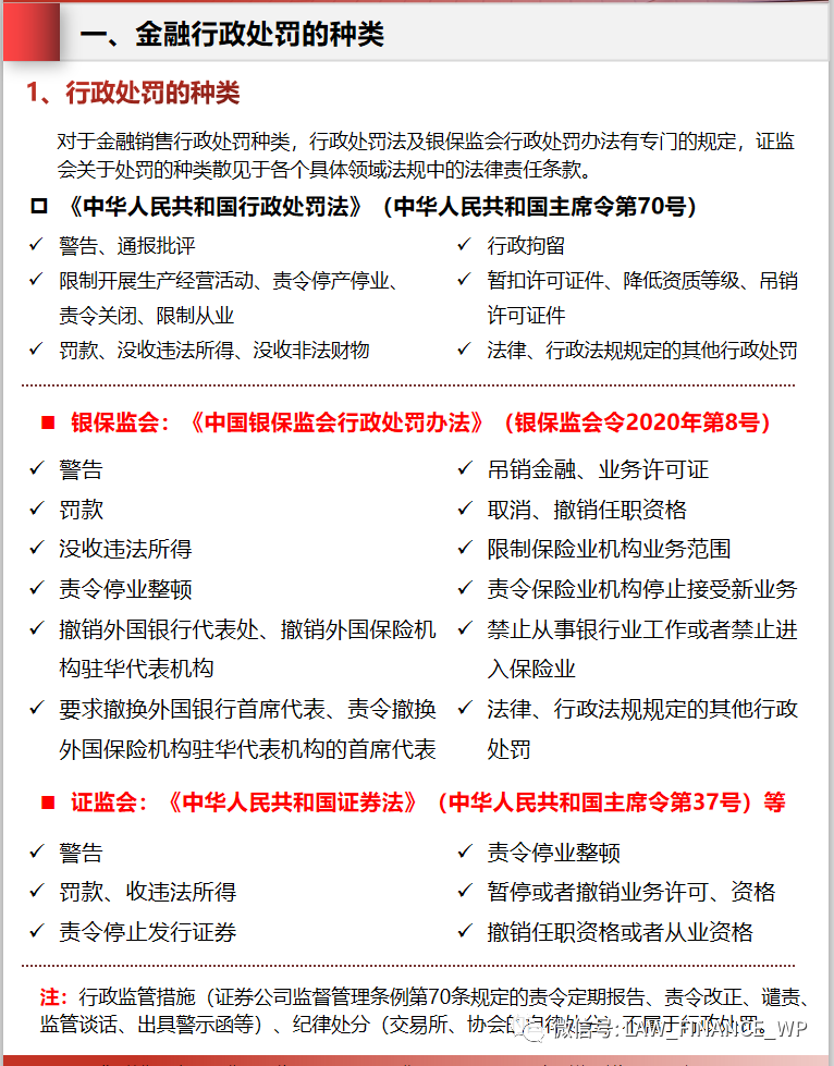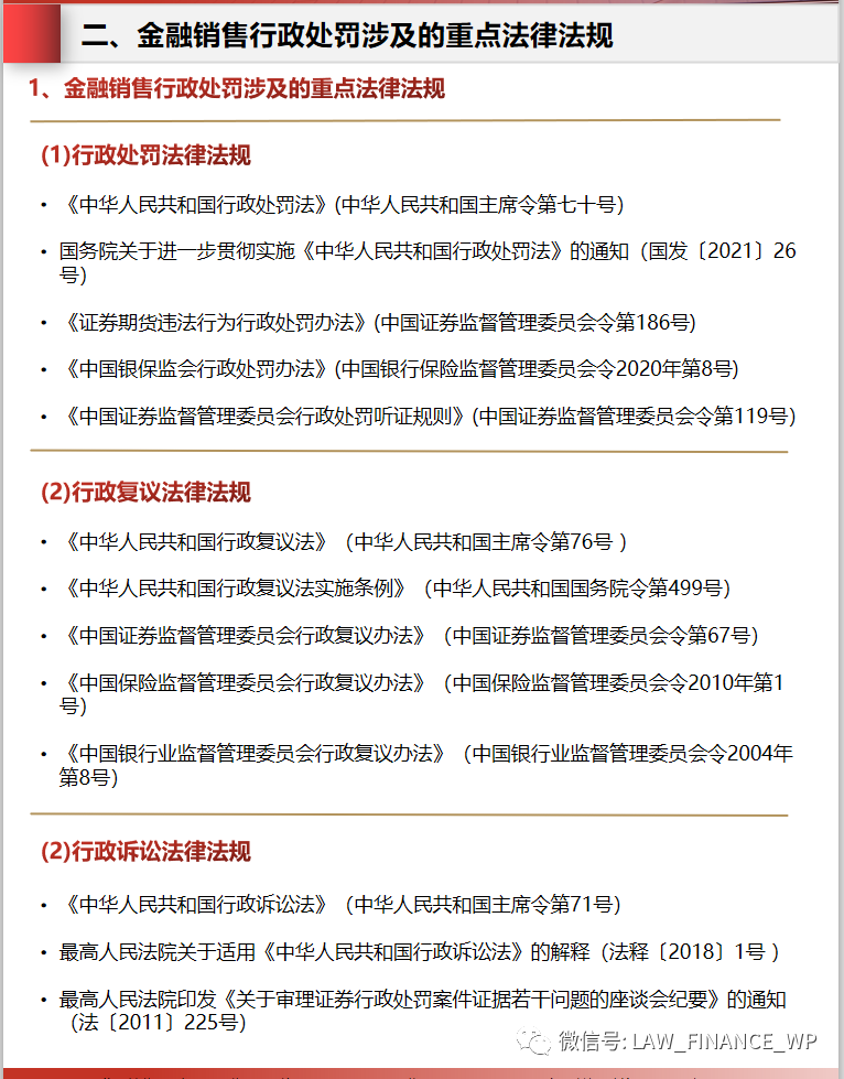 二、金融銷售行政處罰涉及的重點法律法規(guī)