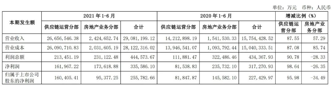 分業務來看,建發股份2021上半年的供應量運營分部營收2665.7億元,同比增速87.6%;房地產業務相對遜色,同期營收242.5億元,同比增速57.3%。
