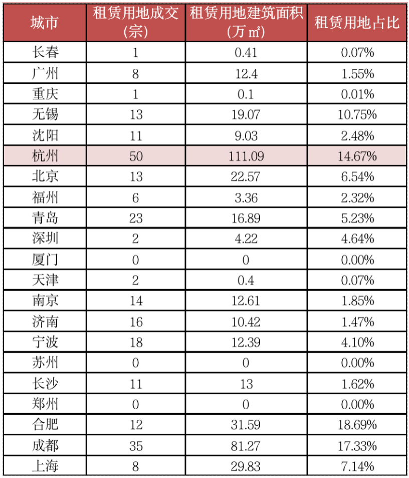 上海租賃用地成交面積及幅數全國首位