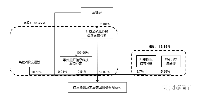 從股權(quán)結(jié)構(gòu)上來(lái)看,紅星美凱龍的控股股東為紅星控股,持股比例為69.87%,穿透后公司實(shí)控人為自然人車(chē)建興。