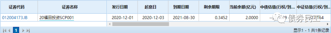 6、深圳市福田投資控股有限公司的控股股東和實際控制人為深圳市福田區國資委,最新主體信用評級為AAA(東方金誠),目前存量債券金額為2.0億元,最新發債日期為2020年12月1日。