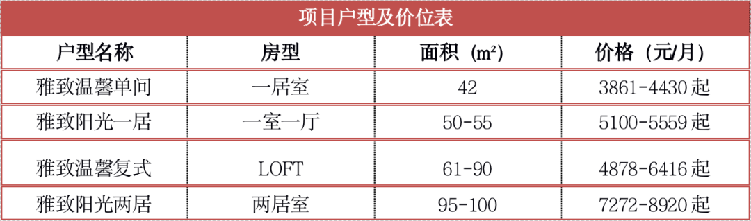 龍湖冠寓華涇天街店于2018年11月正式開業,目前已基本穩定,華涇天街開業后對入住率也有所改善,有部分B端客戶入住。房型及價格方面有一室戶、一室一廳、LOFT、兩居等,面積42-100m2,租金價格3861-8920起,相比周邊個人租賃價格較高,對于白領上班族來說,租金壓力或許較大。