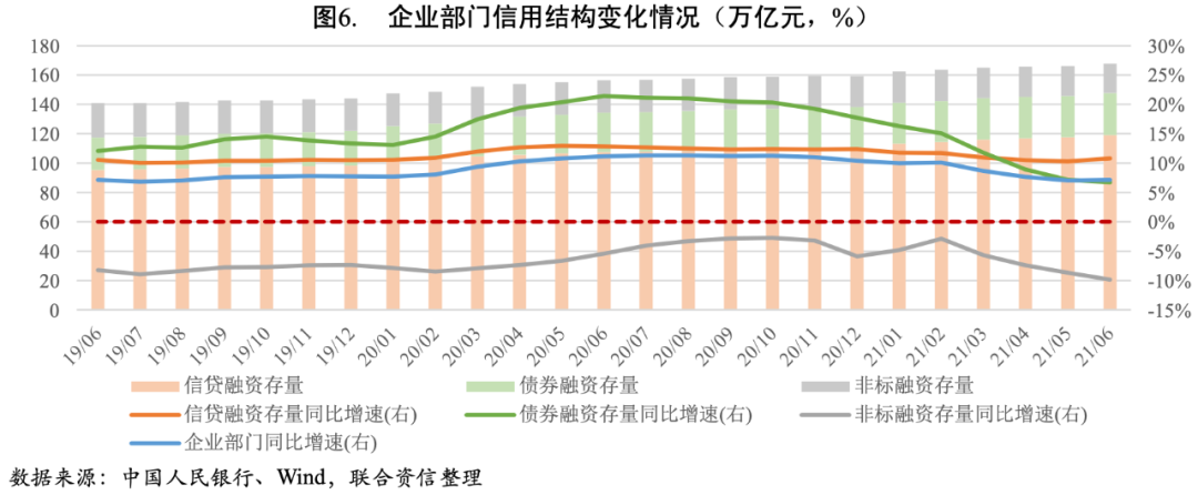 4.企業部門中長期信貸增長較快,非標融資持續壓縮