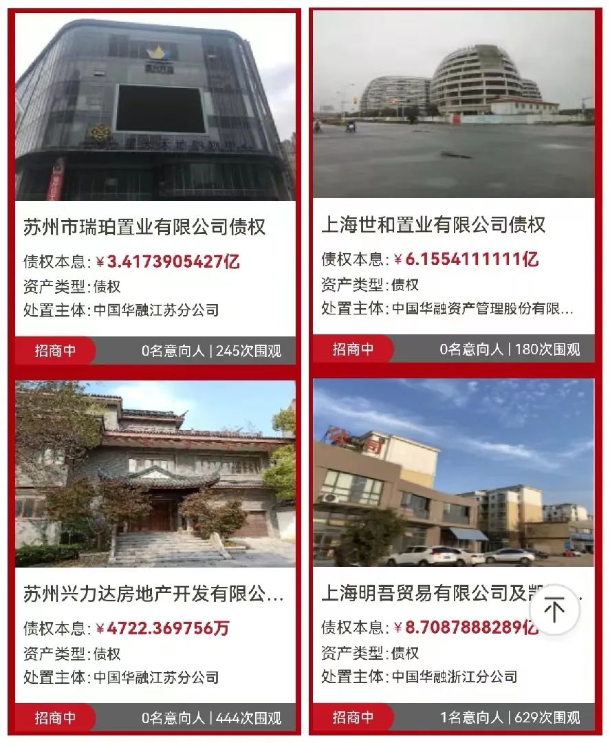 短短半個月時間,華融掛網推介的資產規模已達到約340億元,以各類地產物業為主。