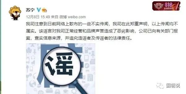 事實上,早在去年12月份,就有傳聞蘇寧資金鏈斷裂,銀行貸款面臨違約。蘇寧控股還特地通過官方微博進行澄清:
