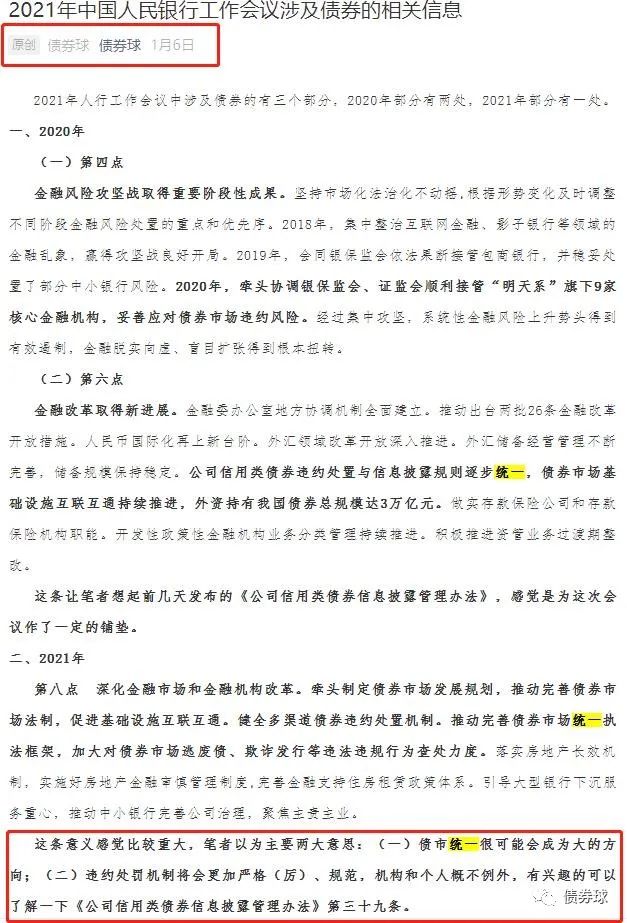其實統一債市的苗頭早就已經出現,從去年年末樓部長發言,到今年年初人行工作會議的精神,都在一定程度上預示了債市要進行統一。《意見》的發布,統一更加明顯,但是這個統一并非絕對意義上的統一。